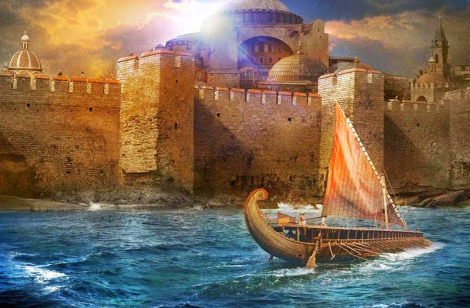 “The most hideous scenes of all, however, were enacted in St. Sophia. Matins were already in progress when the beserk conquerors were heard approaching. Immediately the great bronze doors were closed, but the Turks soon smashed their way in. The poorer and less attractive of the congregation were massacred on the spot; the remainder were led off to the Turkish camps to await their fate. The priests continued with the Mass until they were skilled at the altar, but there are among the faithful those who still believe that one or two of them gathered up the patens and chalices and mysteriously disappeared into the southern wall of the sanctuary. There they will remain until Constantinople becomes once again a Christian city, when they will resume the service at the point at which it was interrupted.”