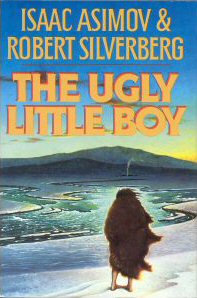 Asimov often referred to “The Ugly Little Boy” as one of his very favorite short stories, though it was never one I particularly cared for. Robert Silverberg’s expansion adds much of interest here, as he did with “Nightfall” and “The Positronic Man“. The characters are fleshed out greatly, and humanized in the case of Fellowes’ boss Hoskins. Silverberg includes another sub-story, one that follows Timmie’s increasingly-stressed tribe as their numbers dwindle and they find themselves surrounded by ‘Others’…..us. This provides an interesting contrast to Asimov’s development of little Timmie; while the original story relied solely on archaeological evidence, Silverburg offers speculation into Neanderthal culture. Timmie’s tribe doen’t create representational art not because they can’t grasp creating representational images, but because they don’t want to anger the spirits. (Silverberg doesn’t delve much into his Neanderthal tribe’s religion: it seems vaguely animistic with a central Goddess, presumably an earth mother.) The two stories ultimately intersect at the end, with a conclusion that invites speculation*. Silverberg also adds another angle to the story proper, in the form of a political agitator who harries Stasis, Ltd. to make sure they are providing a healthy environment for the child. The agitator, Mannheim, is the sort who sues companies into bankruptcy, so his increasing interest in ‘helping’ the incredibly well-nurtured but lonely Timmie adds urgency to Stasis, Ltd’s desire to end the experiment.