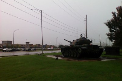 Recently I decided to drive to Tuscaloosa, Alabama, for a bite to eat. Tuscaloosa is famously the home of the University of Alabama, feared and resented throughout the United States for its football program (so I hear), but I was there for a little Greek food. Lamb, specifically. In the deep south, there aren’t many places that sell lamb, but Taziki’s Mediterranean Cafe does. While sitting at an intersection waiting to turn in, though, I happened to see…a jet fighter. And a tank! And a helicopter!