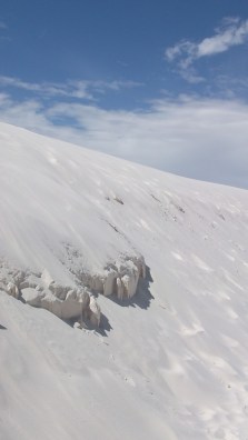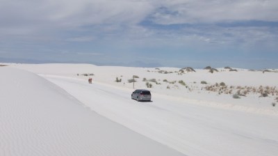 When I returned home, I discovered many photos taken of the sky; my camera’s viewfinder was so saturated with light I had no idea what I was aiming at. I walked in for about three miles, until I realized all the cars passing me were also turning around. I assume it was a closed loop, so I turned around. The walk was shortened by two kindly Angelenos, who were on vacation and decided that I was going to die if I walked back under the noonday sun. They gave me a ride in their Jeep Wrangler, and even it responded to the sand poorly. (I felt slightly vindicated on my Rio’s behalf.) The man driving had done it before, though, and he knew to hug the edges of the road, near the gypsum banks; there, travel was smoother.