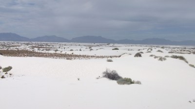 The sight itself was not as surreal as it might have been, because my computer’s background for months has been a sunset over White Sands. But still, to see it in person! The gypsum expanse seemed endless, and if a visitor dared losing sight of the road, it was possible to be completely surrounded by a field of white.