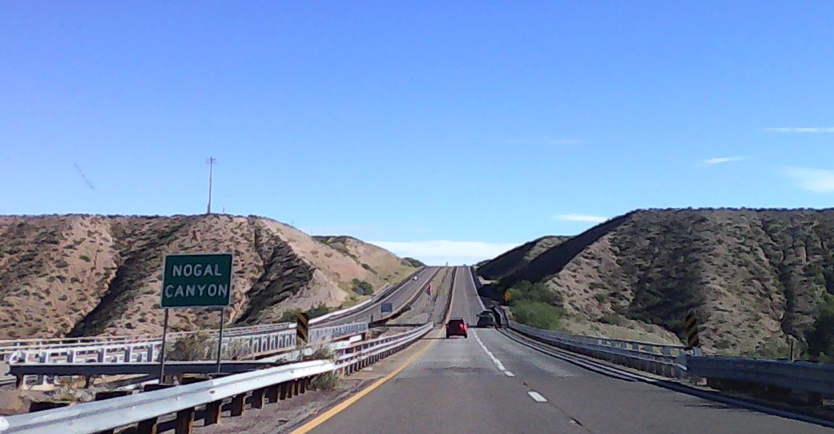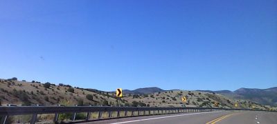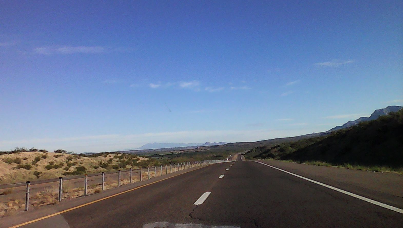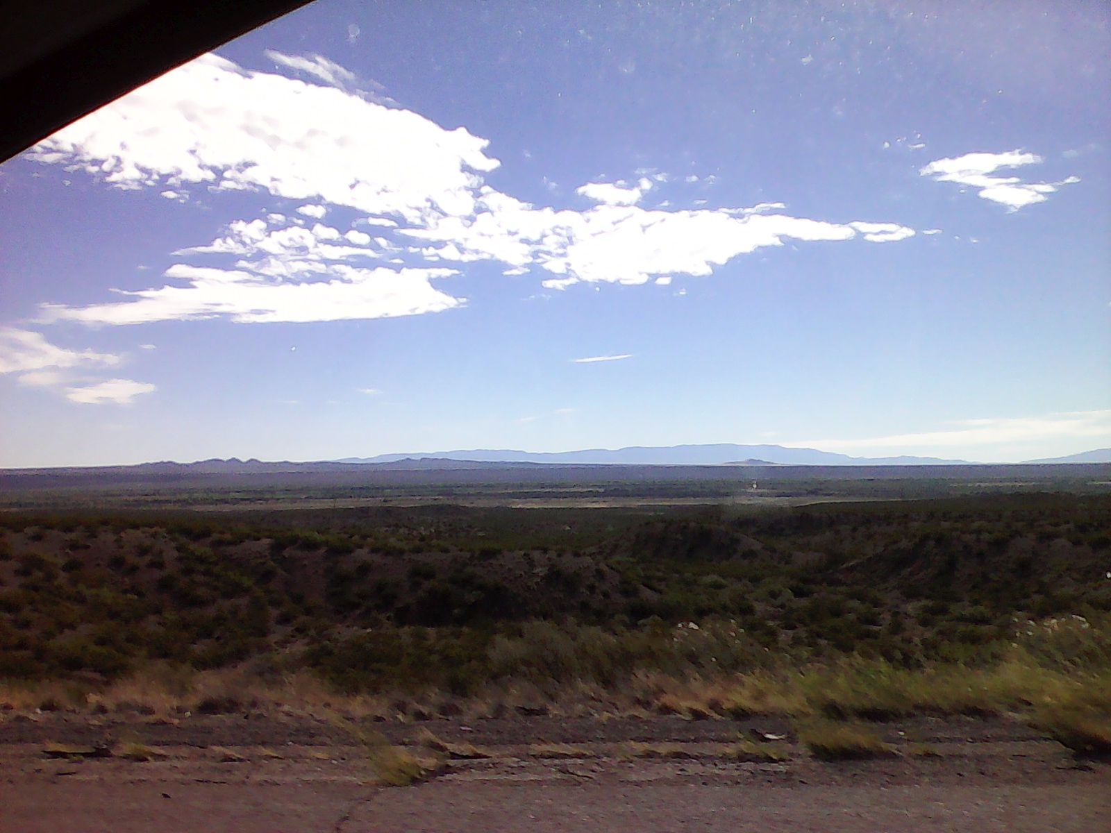 I turned around. Sure enough, the rear-left window was down. I’d accidentally rolled that window down while trying to roll down my driver side window, for the border patrol, and not noticed it. I had a good laugh at myself, and then commented aloud that I was a thousand miles from home; if I only made a fool out of myself once a day, I was doing pretty good. Crisis solved, I blitzed ahead, enjoying the phenomenal landscape. There were mountains behind me, mountains before me, mountains to my left and to my right. This was no valley, New Mexico is merely all agog with mountains. I’d seen so many mountains at this point I’d stopped trying to name them. (I’ve mentioned that I still don’t know if those were the San Andres or Sacramento mountains near Alamagordo, behind White Sands.)