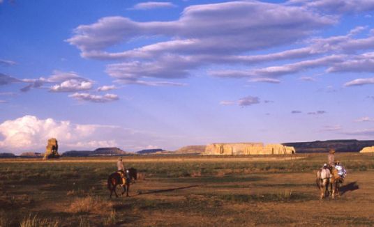 Along for the ride with Preston were a cantankerous neighbor of his, Walter, and a hired woodcutter who professed to be a horse wrangler. Eusebius’s only virtue for the reader proves to be his comic rage that reveals itself with every mesquite tree, barbed-wire fence, and thrown horse-shoe; the man is as experienced with horses as you or I. (His virtues for the party are practically nil, although his incompetence forced Walter and Doug to become jacks of all trades, which probably saved their lives after the fake-wrangler quit.) The country they proposed to cross was desperately hostile. The voyage opened in a thick swath of mesquite trees, for instance, which turned a proposed one-day journey into four days of hacking, cussing, and chasing horses. They crossed mountains so far off the beaten track that the closest thing to a path was a cut made by the riders of the Pony Express. Their journey takes them through the detritus of ruined civilizations and communities, the residents and their hopes long-dead — both mysterious Anasazi remains, and the less mysterious array of abandoned silver boomtowns. They encountered an array of interesting people: rattle-snaker trappers, ranchers and cowboys, echoes of the dying Old West. They also spent considerable time visiting with native Americans as they pass through Zuni and Acoma reservations, learning some of their stories. While the travelers were sometimes greeted with a shotgun, Doug and Walter certainly didn’t look like tourists after the first few hundred miles of hard riding, and after explaining their mission, virtually everyone offered them hospitality with open arms and admiring eyes — even from old ranchers who lived over a hundred miles from everybody else and did everything around their homesteads themselves. (The only exception was a man who assured them that nobody named Coronado came this way because the road hadn’t been built until last year, and anyway that would have been trespassing.)