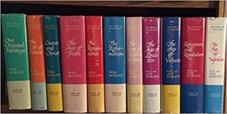 Finally, I have gained an enormous respect for the Durants.  The amount of research conducted over forty years is astonishing enough, even moreso considering the gifted pen with which they wrote.  What most impressed me, however, especially from the medieval volume onwards, was the Durants’ ability to understand and fairly present issues from opposing quarters.  Consider, for instance, the dialogue in The Reformation between a Catholic, a Protestant, and a humanist.  The same convivial spirit is seen as new factions war with each other for control of society, like owners of capital and labor, or traditionalists and reformists.  Many a great man is lauded here, but the poor  are ever given voice.. Durant quotes from Edmund Burke and Karl Marx alike.  I assume the Durants’ sympathetic insight was the result of their long, patient survey of humanity as a whole. It is a mark to aspire to.