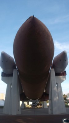 When I visited back in the 1990s, I’m fairly sure the booster stood upright, sans shuttle. This new arrangement allows visitors to stand underneath and ponder how efficiently they would be squished if it were to fall.