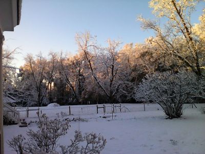 While I didn’t stir today, this was my view shortly before Christmas. My grandmother says she can’t remember ever having two snows in one winter — it’s a once every ten years kind of thing this far south.