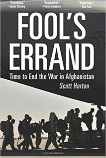 Incredible as it sounds, it is nearly possible for a child conceived in the first week of the US invasion of Afghanistan to have come of age and deploy there himself. He’s out there now, a sixteen  or seventeen- year old waiting for the day when he can fight in his father’s war. The Afghanistan war is an odd one — the United States’ longest war, yes,  but one of its least-cared about:  not popular yet not  protested.  Americans just don’t seem to care about the trillions of dollars burned under the shadow of the Hindu Kush mountains, the thousands of American soldiers killed, or the hundreds of thousands of Afghan civilians killed in attempts to destroy the nebulous enemy.  Fool’s Errand is a case not just against the war, but against apathy.  This war was badly conceived, badly executed, and maintained as a litany of errors, one feeding the fire that the initial invasion intended to squelch. The United States will leave Afghanistan eventually, and the area will collapse into civil war eventually. The only question is how many more lives will be ruined and how many more enemies DC will create in its belabored efforts to fight a hangover by hailing the hair of the dog.