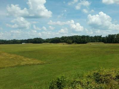 Another area of the park houses three artificial huts built in the style of residences, and each contain half-melted plastic figures which once resembled humans doing the sort of things one expects museum exhibits to do — burying people, marrying, that sort of thing.  In their melted state they’re rather gruesome.  Enjoy another shot of the placid fields instead!