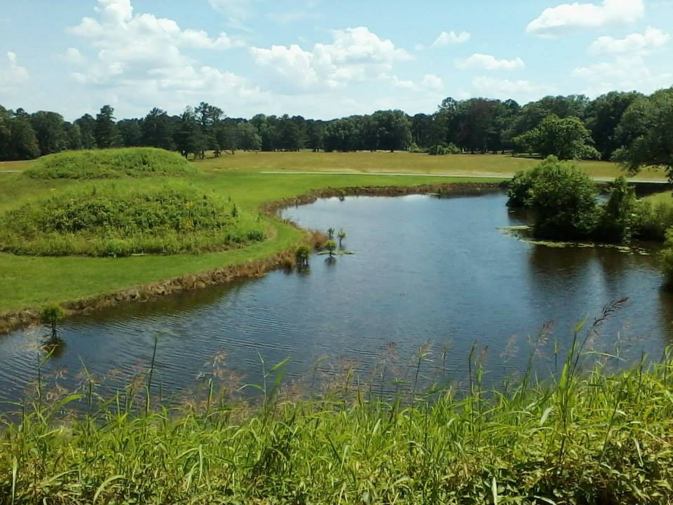 Behind the museum are a few smaller mounds, plus ponds formed from the depressions left from excavating the dirt to build the original mounds.