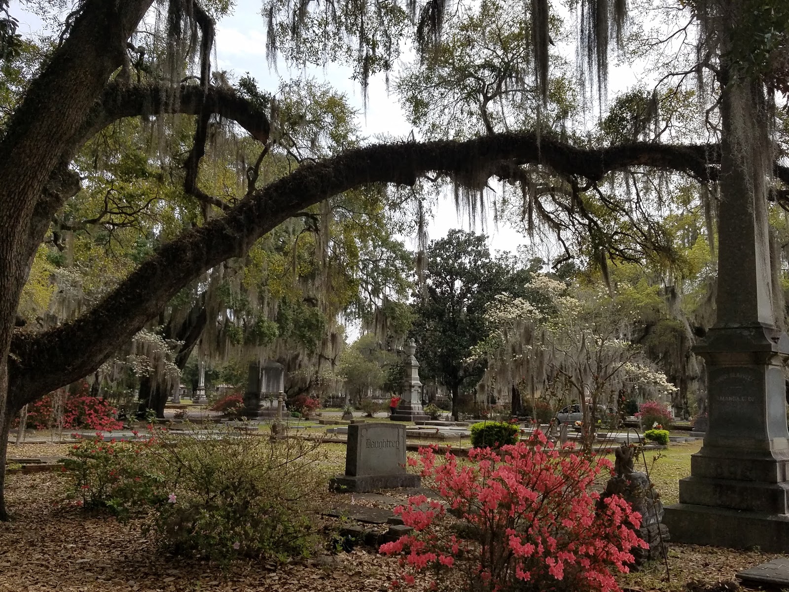 What a beautiful cemetery! The Spanish moss and azaleas make me want to visit the South again.