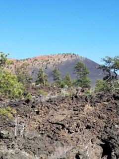 Inside the fields, looking back at Sunset Crater. Only one slope has regained any vegetation.