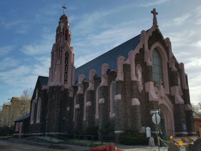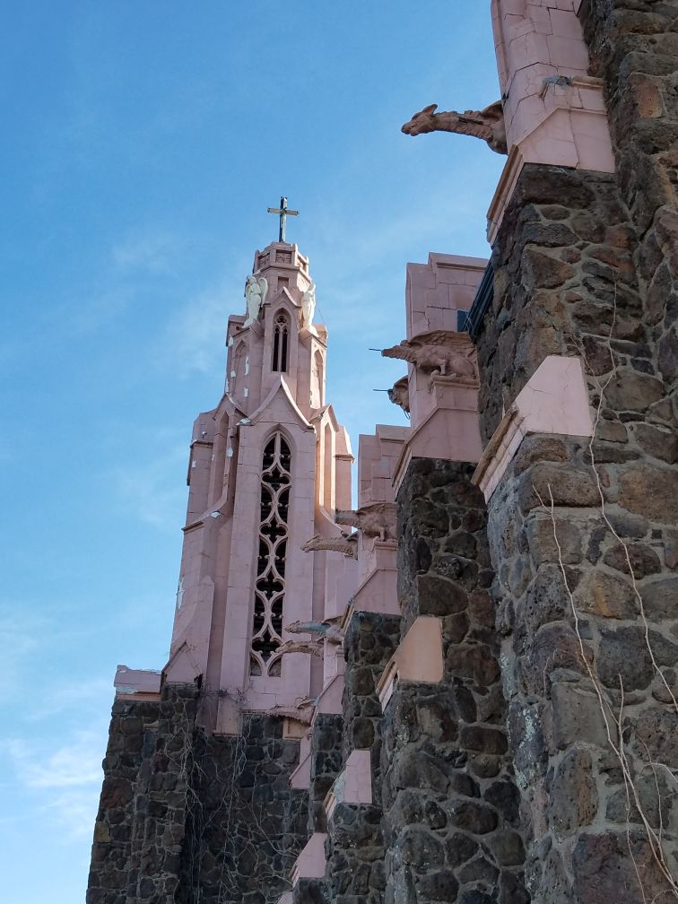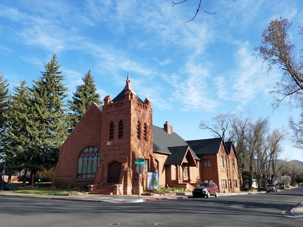 The building material of this church is moenkopi sandstone, unique to the Flagstaff region.  Even modern buildings which use more widespread materials emulate the appearance of the moenkopi.  The church is called the “Flagstaff Federated Community Church”, which…was surely a name chosen by a committee.