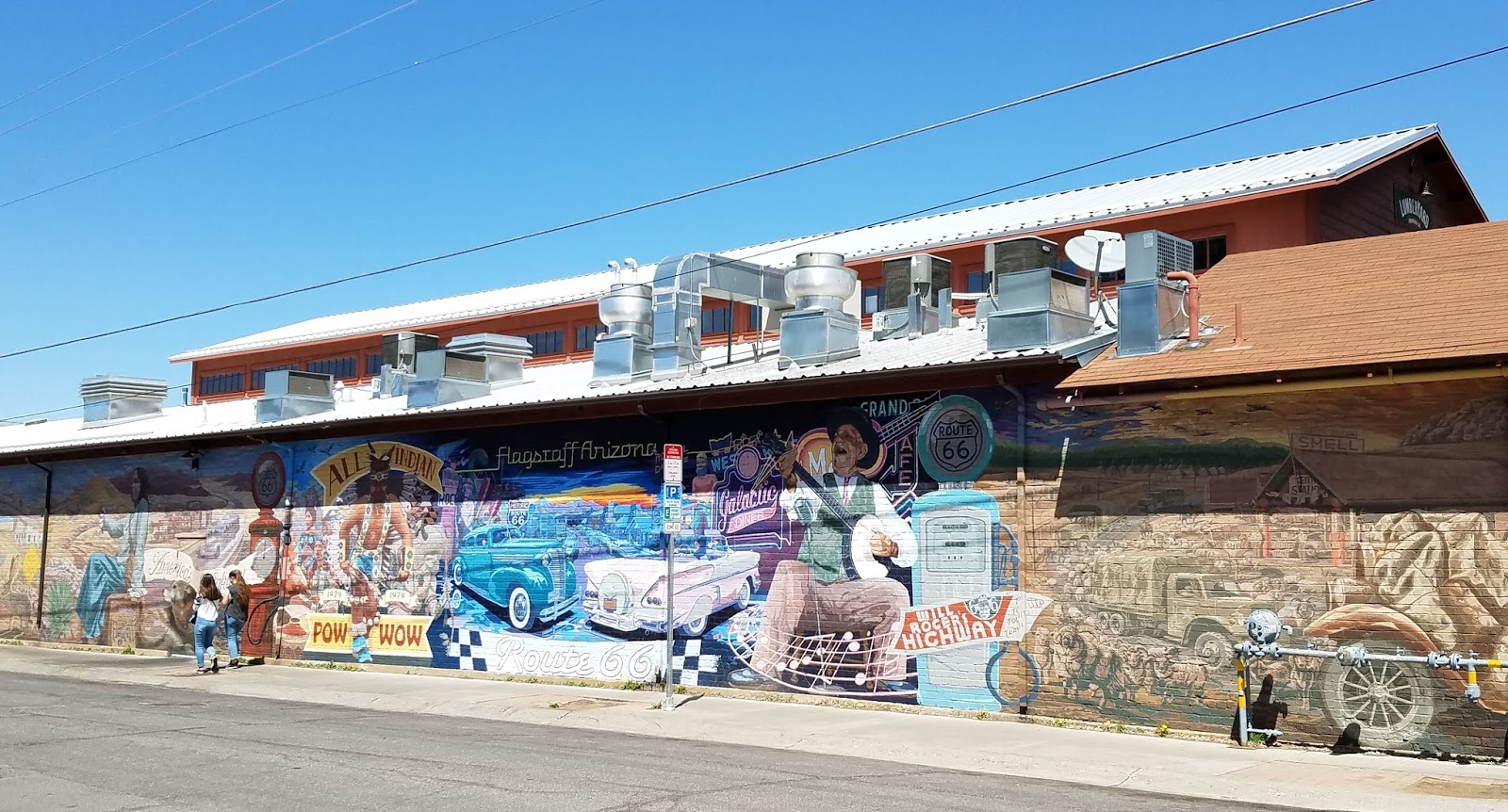 As soon as I landed I drove for the Canyon, but the next morning I decided to explore the town on foot.  I only lived a third of a mile away, or 536 meters,  so every visit to downtown Flagstaff but one was effected as a pedestrian.  One of my favorite parts of living in Montevallo ten years ago was the ability to walk anywhere I needed to go, and Flagstaff brought that ease back.   Because the city is so popular with tourists, virtually every block downtown is occupied by restaurants, shops, or other visitor-friendly establishments.  I enjoyed a bike tour on Sunday morning, operated from the Flagstaff Sports Exchange, and was amazed at our ability to pedal along on the road without being  run over. There were even bike lanes, and $1 rental bikes parked in various downtown locations.  Capitalizing on the heavy amount of pedestrian traffic were street musicians, from indie kids on guitars to one very brave Frenchman playing an accordion and singing romantic songs of old Mexico. I tipped him instead of the indie kids in sheer admiration for his bravery.  I think it’s legal to stone accordion-players in some towns.