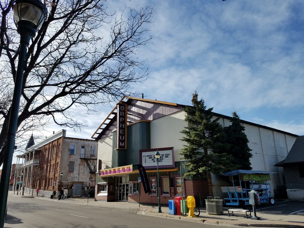 On the left: the Weatherford, followed by the Orpheum Theater. On the right but out of frame is the Sports Exchange, which hosts the bike tour. The Orpheum hosted a Big Lebowski night on Thursday.
