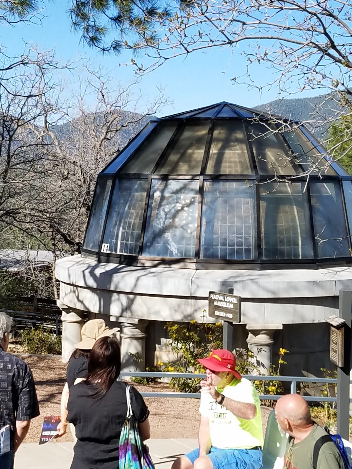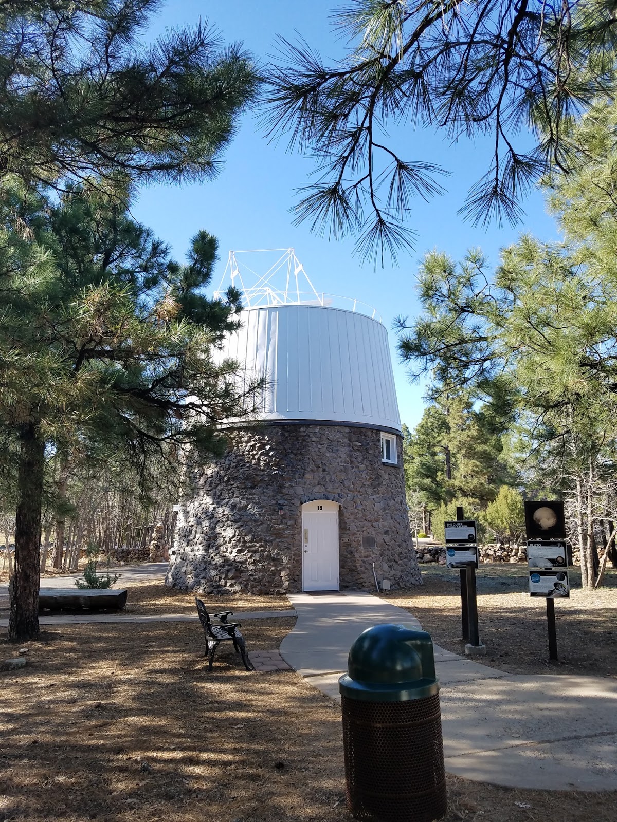 Overlooking the fair city of Flagstaff is Lowell Observatory, perched atop Mars Hill. The founder of the Observatory, Percival Lowell, believed based on changing observations of the planet, that it was occupied by a technologically adept civilization, one which had established canals to route water from its own ice caps to fields further away. He was a wealthy mathematician turned diplomat who had the means to establish his own private observatory, and needed a place which was dry, dark, and high. Flagstaff was ideal. The inspiring early observations of Mars later proved problematic and the conclusion wholly wrong, but the Observatory has done great work over the years since 1894.. It was featured in Carl Sagan’s Cosmos, as the place where Vesto Slipher discovered that galaxies were moving (and more quickly with their distance from Earth), as well as the site of Pluto’s own discovery. The observatory still does scientific work at its dark-skies campuses further from town, but the original site is by no means retired. Instead, it focuses on public education; I was there for four hours listening to lectures and using telescopes to look at solar flares and the stars. I also got to see the original Clark telescope, though it wasn’t available for viewing the night I was there. Sometimes the public can look through it, however.