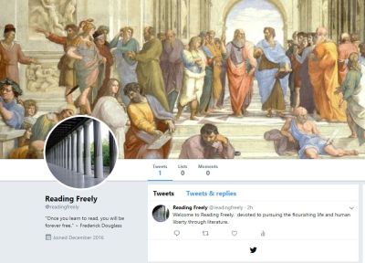 The start of a new year seems as appropriate a time as ever to launch into something I’ve been mulling over since 2016: a re-branding that invigorates this blog with purpose, and takes me a baby step away from the Googloplex.  Twelve years ago, when this blog began with my taking literal weekly visits to the library and reporting on what I found there, I was also maintaining a “philosophy/humanities” blog, which started as my attempt to sort out the Meaning of Life, the Universe, and Everything. Once I’d figured that out (it’s coffee and books),  my activity there ebbed away as I focused my literary explorations instead.  I had an idea for reviving it, by focusing it on the pursuit of the flourishing life,  possibly using the Latin understanding of humanitas as a keystone,  but I kept thinking I could do that through the book blog, instead.  Reading Freely is my attempt to combine both my literary wanderings and the pursuit of the flourishing — and meaningful — life.  Although it will be rooted in the western tradition,   my ideas for orienting content mean that it will continue to encompass study of the entire world.  There won’t be any drastic changes in content, beyond an uptick in quality-of-life books (a rough description encompassing everything from Stoic literature to modern works on maintaining healthy relationships amid digital distraction), and the possible publication of thoughts inspired by especially insightful books, beyond a review of the same.
