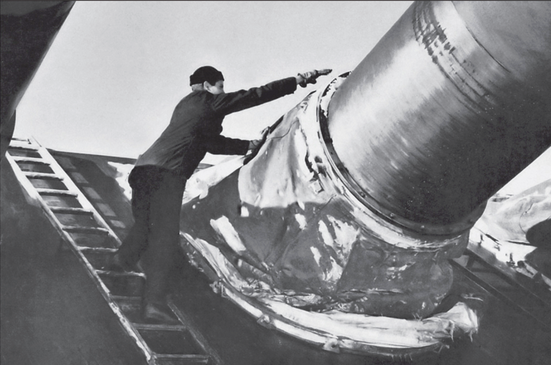 Cleaning the “big guns”, which…are very big indeed.