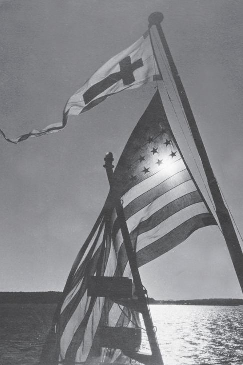 The cross pennant indicated that religious services  were in progress.