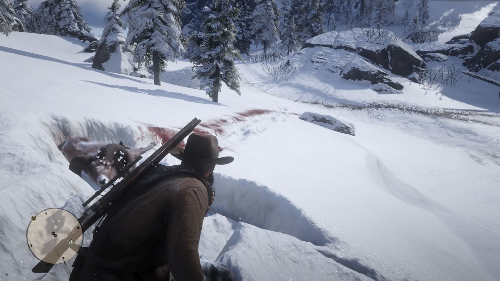Took a ram on my way to track a legendary bison, and had to admire the snow effects.