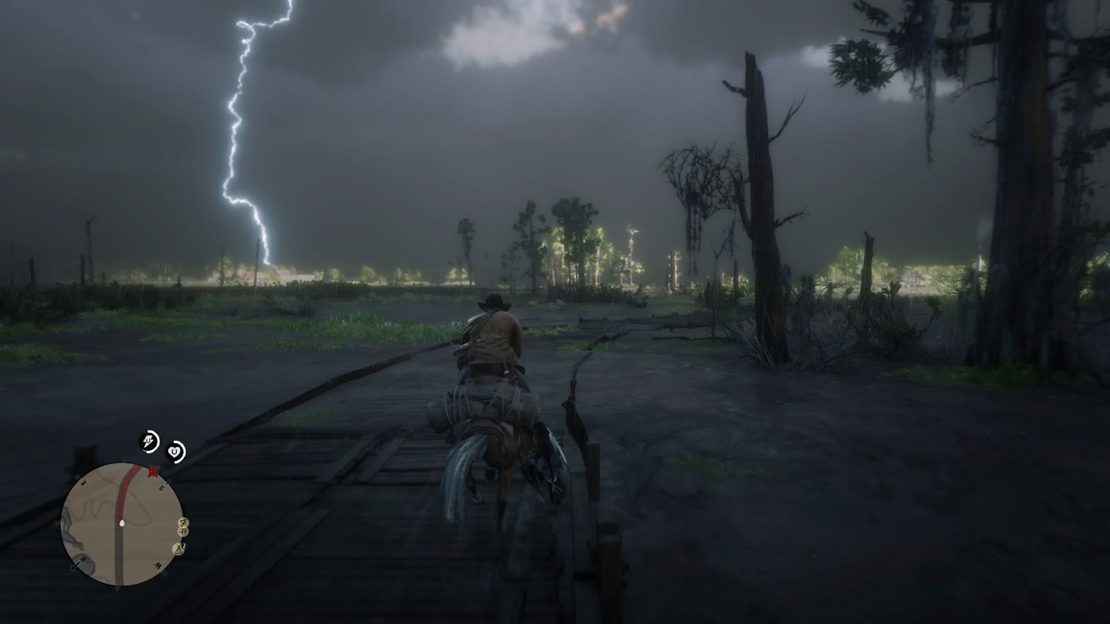 Riding back into St. Denis with a perfect alligator skin in the midst of a thunderstorm