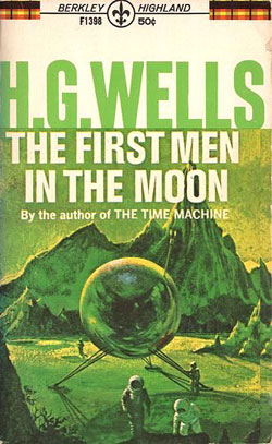 H.G. Wells’ The First Men in the Moon, published in 1900, recounts the extraordinary journey of an ambitious prospector and a scientist, who — after the scientist discovers a way to create a metal ‘transparent’ to gravity — fashion a ship to take them to the Moon. Although the scientist Cavor is purely after knowledge for its own sake, his companion Bedford sees the ship as a source for unlimited wealth: think of all the minerals out there waiting to be mined! No sooner have the men landed on the lunar surface, though, have they gotten lost, intoxicated, and …a little tied up by the locals. Wells’ curious title, First Men In the Moon? That’s not a typo; Wells’ moon has life, a civilization existing within its core, and in due course the curious scientist and his avaricious cohort are both in mortal danger, and rather humbled by it. First Men impresses in several regards; Wells seamlessly transitions from technical speculation to social , and considers the human drive to explore (and sometimes, exploit) enroute. Although Wells’ speculations about a lunar atmosphere and life were off, he’s much closer to the mark in anticipating, say, the intense experience of encountering a lunar sunrise, or the stars without the obstructive filter of Earth’s atmosphere. Very much recommended for classic SF fans.