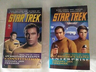Continuing in Star Trek: My Brothers Keeper, I read the second and third volumes in the trilogy. Constitution  revisits an early Kirk & Mitchell mission in which Kirk is forced to take command and defend a world against an outside attacker with a malevolent satellite system.  We see a lot of character growth here for Kirk, as he’s forced to act more on instinct in a situation that demands quick responses.   In Enterprise, Kirk  is asked by Mitchell’s parents to deliver a eulogy at the fallen man’s funeral, Kirk wrestles with the decision to tell them the truth of their son’s death and his role in it. As part of his reflection, he looks back to another time when he thought Mitchell was dead — to a time when Enterprise was ordered by Starfleet Command to deliver a small team to a barren wasteland, where waited a Klingon cruiser. Kirk knows this is not the first time Starfleet and the Klingons have rendezvoused here, but he has never been privy to the details of these secret meetings — not even now, as captain. Disaster strikes and Kirk soon loses the Enterprise to a small band of augmented Klingons, and must work with Klingon legend-in-the-waiting Kang to free his people and eliminate a threat to the Federation. As a Star Trek novel, this is perfectly fine; it’s an enjoyable adventure with good characterization and humor. As the ending part of this trilogy, though, it suffers for want of Gary Mitchell: he recedes far into the background for most of the book. It’s essentially a Kirk and Kang struggle, with Friedman making an attempt to explain why TOS had human-like Klingons and TNG had Klingon-Klingons. Amusingly, Friedman uses genetic augmentation in the story — taking it the complete opposite direction that ST-Enterprise did.  Mitchell doesn’t play as prominent a role in the third story as one might expect, but the trilogy remains solid light-adventure Trek fun.