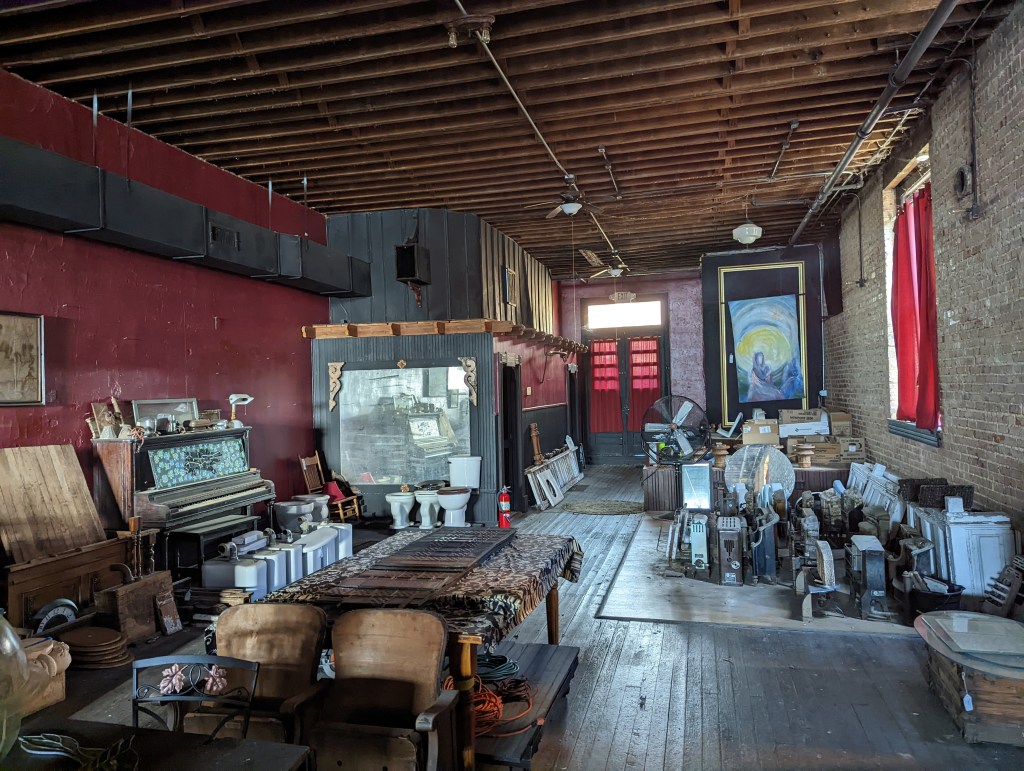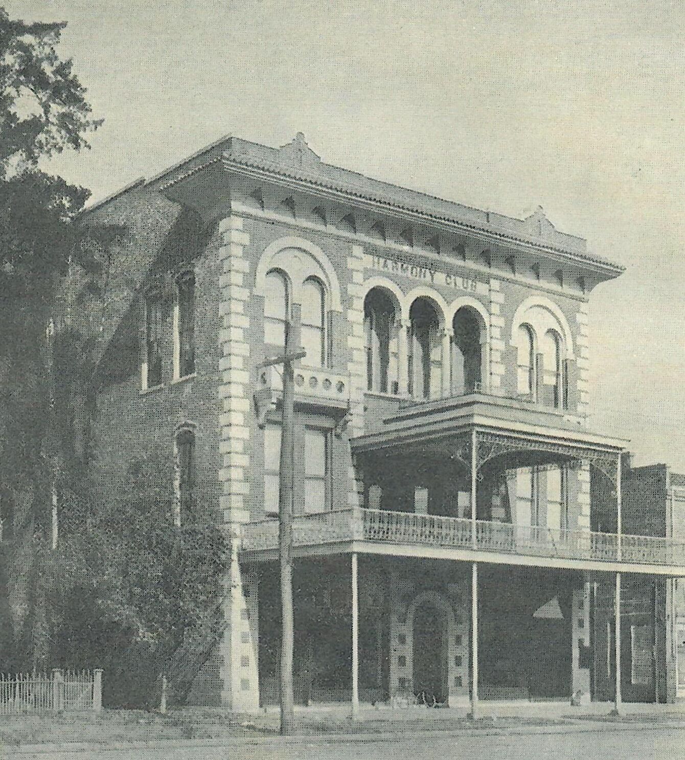 For the last few years, I’ve had the good pleasure of hanging out at one of Selma’s more remarkable downtown buildings, the Harmony Club, as its owner treated one of its downstairs rooms as a clubhouse and BYOB bar. In warm weather we’d gather on the sidewalk in folding chairs and watch the traffic; in colder months, we’d huddle inside, bellying up to the bar itself and warming our bones with chili or burritos. The space has all the appeal of a bar — a convivial space to meet with friends to drink and talk — without the pricetag, since we bring our own. The building was sold in 2022, and its new owners will soon begin finishing the restoration work begun by a friend of mine in 1999: those of us who gathered there several times a week for company, movies, and the sharing of grub and gossip will, within the year, find ourselves “Third Place” orphans. Before the HC as I knew it passes into history, I wanted to share what I know of the building, and to reminiscence about my time in it. I like distinctive Places, and the Harmony Club is the most unique in Selma.
