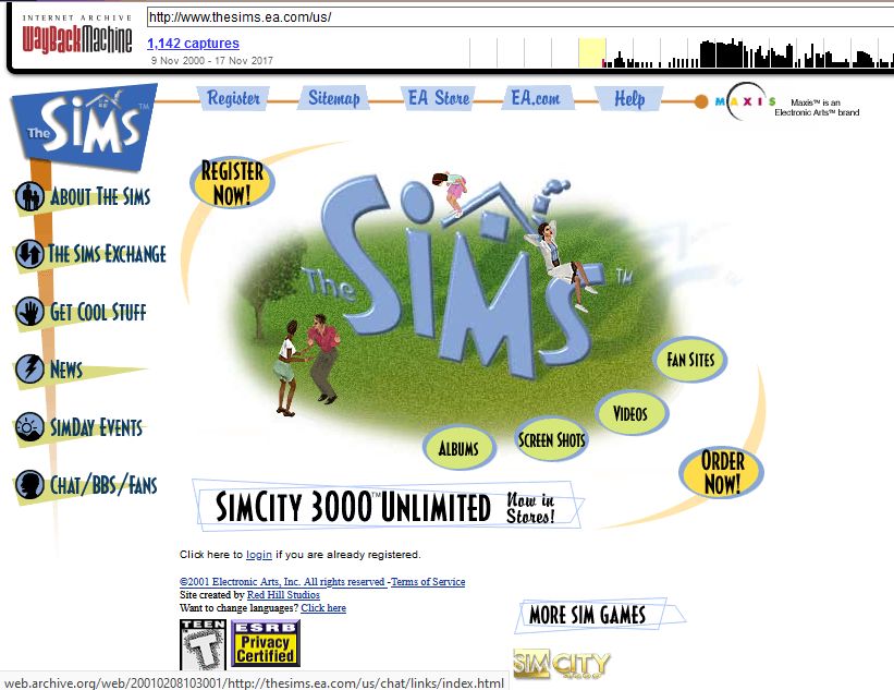 Oh man … I remember the scandal of whitehouse.com (vs. whitehouse.gov), lol. Re: Sims — I played a little but I’m old… my kid played quite a bit and still talks about how she was proposed to in the bathroom!