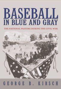 First up, Baseball in Blue and Gray: The National Pastime during the Civil War. This brief little book covers baseball in the 1860s, both at home and in military camps. Although primarily about the war years, author George Kirsch often refers to the 1850s to give better context. Baseball was not quite the sport as we know it here, but its head was definitely breaching. Kirsch offers a brief overview of the origins of baseball — the popularity of stick-and-base games in England, their migration to America and subsequent evolution of proto-baseball games with varying rules — before charting the progress of baseball through the war. The game was a popular, not professional sport back then: schools, workplaces, and fraternal organizations had their own teams of ‘nine’ that would play against one another, but no one was ‘paid’ — not officially, anyway. Despite so many men being off at war, baseball became an increasingly popular spectator sport during the conflict, possibly as people sought relief from the war news. When the Army of Northern Virginia invaded Pennsylvania in hopes of forcing a defeat on the Yankee army to end the war, Pennsylvania newspapers nontheless published article after article about Philadelphia’s team playing a series against New York squads. At this time there were still different baseball rules, but the “New York” rules that modern baseball is based on became the standard during the war years. Baseball was also a constant diversion for soldiers, both on campaign and in prison camps, and the bringing together of men from different parts of the country together helped the sport spread from the northeast and midwest where it was most popular to across the country in general. Officers supported the game, since it promoted ‘good martial virtues’, and presumably was a healthier way to keep the men entertained than drinking and gambling. Soldiers tended to use more informal rulesets than the New York approach, given the problem of supplies (especially for southerners) and the chaotic nature of war. Kirsch reports one instance of a ballgame being interrupted by an attack, in which the outfielders were shot and taken prisoner, but the infielders managed to get back to the safety of their lines. Informative but short!
