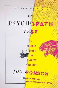 Jon Ronson’s journalistic niche is the weird, so when he learned that numerous intellectuals across the western world had received identical volumes of the same modified book — a richly bound but thin little volume that consisted of both blank pages and cryptic messages, with an identical square cut out of each volume’s page 13 — he had to find out more. The recipients found one another in their attempts to find out what on earth they’d received, and one of them reached out to Ronson to enlist his help. Ronson’s own investigation determined that the books were sent out by a particular person who he realized was a little mental, and he wondered that so much activity — including transatlantic meetings! — could result from the random activity of a crazy person. Maybe it’s not reason or love or money that makes the world go round. Maybe it’s madness. His interested kindled, Ronson then began exploring the world of being ‘crazy’: what is it? How do you know? — and then became interested in psychopathy in general after meeting someone who claimed to have faked mental illness to avoid prison, only to find himself locked up in one of Britain’s worst-case offender nuthouses.