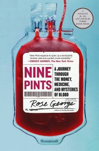 Rose George has previously shared with readers her voyages across the world following cargo ships and movements to make sanitation both more eco-friendly and readily available to poorer communities. In Nine Pints, she dips into the circulatory system. The result is my least favorite of her offerings, though it’s diverting enough, with a mix of history, science, and explorations of the British blood bank system. She delves into its origins, and into bloodletting’ history– from ancient ideas about the four humors, to the contemporary use of leeches to clean wounds. There’s a good section on bloodborne diseases like HIV/AIDs, and several sections involving menstruation — taboos about it, one man’s attempt to create cheap sanitary napkins, etc. As a childless bachelor, my interest in that subject is rather handicapped, as you might expect. What most disappointed me in this book was the complete absence of renal disease and the need for blood dialysis, which would be more substantive than a section on kooks who drink blood and call themselves vampires. She also falls into the modern error of using ‘gender’ when ‘sex’ is more appropriate, referring to the lower rate of hemoglobin replenishment in women than in men as a ‘gendered’ difference. That women wear panties and not boxer shorts is a gendered difference: that women have periods is a sexual difference.