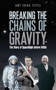 You know the story. The scene: 1950s America. Everyone is drinking on the back patio in suburbia, dressed in cardigans or pearls and pastel dresses, and admiring the latest model of a fin-tailed sedan, reflected in their “I LIKE IKE” pins. Then, from the skies, that sinister noise — beep, beep beep — and suddenly the peace of postwar America is broken by the realization that those nasty Ruskies are up to something, and money must be thrown at hosts of bespeckled young men wearing thick glasses and pocket protectors so that the moon doesn’t become the next Siberia! Well — stuff and nonsense, says Amy Shira Teitel. Not only have men and women been looking toward the stars with an aim to travel there since the 19th century, but the United States had been steadily pursuing rocketry and the possibility of space aviation since the close of World War 2. Breaking the Chains of Gravity, a second history of early aviation and the space age from Ms. Teitel, is a fascinating look into the history of rocketry and jet aircraft that would later join together in NASA. It’s a lite-technical history written for a popular audience.