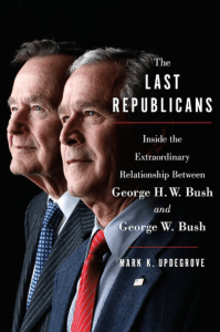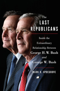 The Last Republicans is the story of a unique father and son, whose fraternal bond was made stronger by politics far before Bush the younger ran for office in 2000. Bush senior made history when he became the first vice president to be elected to the presidency since Martin van Buren, and further made history when he saw his son later follow him in office, which had not be done since John Adams’ son John Quincy became the sixth president. Although my grumpy libertarian side would like to dislike George H.W. Bush for his CIA tenure, I’ve never been able to manage it — and I was relieved to learn here that he had no long connection to that organization of spies, coup-installers, and general murderous mischief-makers, but was simply appointed to the top post by President Ford — a bit of a consolation prize for not being asked to join Jerry’s ticket as the vice presidential nominee. George H.W had a difficult time in the Republican party in the late sixties and seventies, as conservatism itself began changing — becoming more militant in response to both Soviet expansion and LBJ’s Great Society, and advancing the fortunes of men like Barry Goldwater, who were not from the respectable Taft-Bush sort of conservatism. The rising neo-cons looked askance at Bush’s breeding, but as I discovered here, he was no mere manor-born son of privilege. He and his wife were azure-blooded, to be sure, but set forth to make their own lives in Texas, where no one cared about their names — raising their small family in modest circumstances. Although Bush would eventually make a fortune in the oil business after learning the ropes as a clerk, he was not content to rest on his laurels and join the boys for cigars and brandy at the club: he was an aristocrat in the Adams-Washington sense, believing strongly in the need to serve the common good. This led him to politics and congressional runs, where his son George — rapidly nearing adulthood — watched and helped his father. Ultimately, Bush senior’s regard in D.C. would grow as a result of appointments (as UN Ambassador, CIA director, etc) before launching him onto the national spotlight alongside Ronald Reagan.
