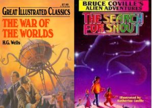 I encountered Star Trek in 1992, watching episodes of the original series from a hospital bed, and would feed my interest in it by reading Treklit from the library or with my allowance. There was a juvenile TNG series in which we follow the main characters when they were at the Academy which I remember fondly, and when I encountered Bruce Coville’s space-adventure books I knew they were like Star Trek, in that they featured a crew of aliens from different planets working together. One of the books was even called The Search for Snout, which I recognized later on as a Search for Spock reference. Goosebumps wandered into SF territory from time to time (there was at least one book set on another planet), but was largely horror.