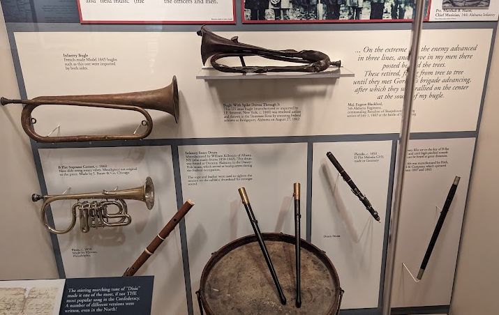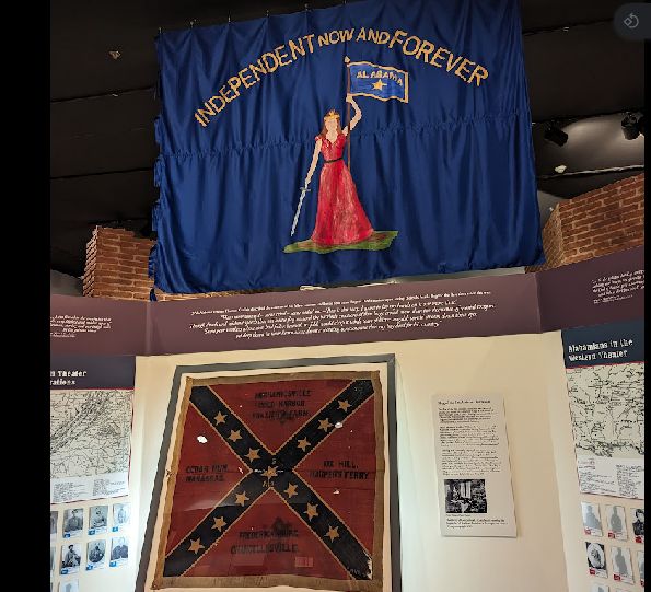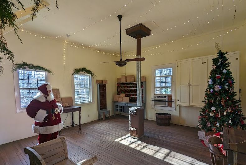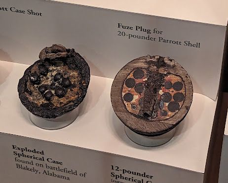 In years past I’d heard of a Confederate Memorial Park somewhere in Marbury, but assumed it was something like we have in Selma: a place where the dead were buried and a placard or statue put up. After the tornado struck, though, one of the aid workers who came into town from Boston proved to be a Civil War enthusiast who was determined to make the most of his time in the South — and discovered that the ‘park’ was a museum and library on the site of what had been a rest home for aging and indigent veterans of the War. (Or, as one visitor called them, “indignant”.) I was intrigued by the library, as my new friend was impressed by its collection, and made my way there this past Saturday to check the place out. Although I wasn’t able to access the library, it being staffed solely by volunteers who had hung up their hats at noon, I was most impressed by the museum and enjoyed my walk through the grounds. At its height, the place had 22 buildings which included communal places like a galley, as well as smaller cabins for veterans and their wives to live in. It was made possible by a donation of land by Jefferson Manly Falkner (lord, what a southern name), and donations from others — including Union veterans, who directly paid for the “Blue and Grey Cottage”. Although there are no extant buildings from the original complex, there are still foundations present as well as parts of the water and gas infrastructure that made life possible and comfortable for the aging veterans. My visit coincided with Santa holding court in the old Mountain Creek post office and taking photos with kiddies. I’m including a few shots below, but this place was loaded with rifles, shotguns, and handguns. It’s really quite the collection, the best I’ve seen in Alabama. It’s still very rural, a place of streams and piny hills, and made for quite a nice mild hike into the woods.