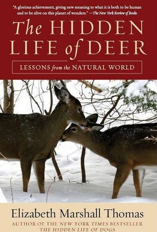 There’s a buck mounted in my living room, but it’s not a head: it’s a large photograph of one standing at a stream in the woods, dawn light softly illuminating the morning mist. I find deer, second to horses, utterly beautiful creatures – -at least, provided they aren’t standing alongside the road on dark winter nights, threatening to bolt at a moment’s notice and destroy whatever vehicle is passing along. Elizabeth Marshall Thomas shares that admiration for deer, and makes a habit of feeding the population that lives in the New Hampshire woods near her house. Her interest in them, though, goes beyond merely giving them something to eat in exchange for the joy of watching them as she might a group of hummingbirds: instead, she’s intently curious about them, a genuine student who pokes through their winter stools to gauge their health, and yearns to know the land as intimately as they do. She identifies four distinct groups in the population around her, which she labels Alpha, Beta, Epsilon, and Tau, and most of her study is on social dynamics: the four groups all have interior hierarchies, with clearly dominant females who guide the feeding. Curiously, lower-class females in a group will stop eating and move with the group as soon as the dominant female decides it’s time to move on, even if they haven’t had their fill. Amusingly, though, some lower-status deer will use alarm signals to spook the group into hiding so they can scarf some food down before joining their mates: I’ve read of similar behavior among primates who use predator alarms to frighten their troopmates away from choice fruit. Thomas’ observations aren’t strictly organized the way Leonard Rue’s Whitetail Savvy was (the only book on deer behavior I can find that’s not hunting-oriented) , but she covers the basics: how deer change through the seasons, their methods of communicating, etc. The back half of the book is less about deer and more general nature observations. Thomas identifies as a tree-hugger, and her approach is a quirky mix of serious scientific approaches (poring through scat) and references to Gaia ‘setting forth a path’ and ‘telling deer’ what to do. I enjoyed the volume as a reflection on nature, but for more serious content Rue is still the go-to source — and he’s referred to consistently.