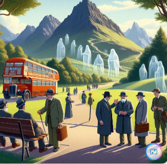 (7) The Canterbury Tales! I asked for a group of medieval people, ranging from peasants to nuns to knights, walking together through a rural countryside of wheat and cattle. They were supposed to be talking and listening to one another. Bing supplied….a lot of cows.