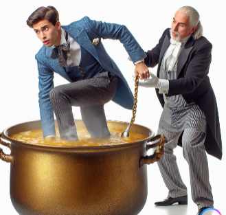(2) Any Jeeves & Wooster story. Props to Cyberkitten, who alone guessed this one! There’s no story about Bertie falling into a well: the general idea in the picture is that a butler is helping his young ward out of a problem he’s got himself into!