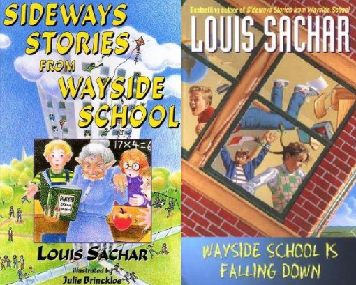 Wayside School was, I believe, my introduction to absurdist writing, and Sachar was a master at it in the realm of kiddie-fic. Imagine a school built sideways: instead of being 30 classrooms in a single-story campus, it’s a thirty-story skyscraper with a classroom on each floor. That’s Wayside High, and its residents are even screwier than the school. In each of the first two books (Wayside High Under a Cloud of Doom being somewhat different), we visit each student in Mrs. Jewls’ class in turn — at least, once mean Mrs. Gorf, their original teacher, does the class a favor and gets herself eaten by the janitor, Louis. (Louis isn’t a cannibal, it’s just that Mrs. Gorf had been tricked into turning herself into an apple, and she looked so shiny and red…) Most of the kids are extremely memorable, especially Sammy who is a dead rat pretending to be a child by wearing an abundance of coats. As that description implies, this is not a normal book of school stories. There are plenty of things that are “real” — Paul’s constant temptation to pull Leslie’s pigtails, the fight for the “good” equipment at recess, that sort of thing — but even the real elements have a spin on them. The quality of a kickball, for instance, depends entirely on its color, and in one story a girl who forgets that it’s Saturday and comes to school is interviewed by mysterious G-Men who want to know why. (The G-men appear to dwell in the basement and make an appearance every book.) And then there’s Ms. Jarves on the 19th story, who — as everyone knows — doesn’t exist. This is a running joke: one student who is inexplicably invisible stumbles into the 19th story, and in another an errant kickball strikes between the 18th and 20th stories and promptly disappears. Enjoyment for the reader is doubled by Sachar have the characters be aware of the absurdity to some, like when Rondi realizes she’s being complimented on clothes she’s not wearing and starts doubling down on it — and another kid realizes she can use Mrs. Jewls’ “no dead rats in the classroom” policy to get to recess in time quickly enough to get a green ball, by pretending to be a dead rat. When I looked for a copy of these, I found an omnibus series that also included Wayside School Gets a Little Stranger. I can’t remember if I’ve read it or not, but the substitute teacher with a third ear seemed vaugely familiar. Of the three, I still enjoy Sideways Stories the best, despite Falling Down being my first exposure to the series.