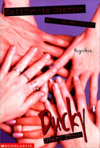 Ducky, diary 3. We approach….the finale. Amalia is still wrestling with commitment issues in re: Brendan, who she really likes but doesn’t want to fall for. Maggie’s mom is no longer spiraling out of control, she’s an absolute train-has-left-the-tracks-and-is-about-to-wipe-out–a-city. Ducky literally has to wake up in the middle of the night and pick up Maggie and her little brother, because their mother is in a drunken rage so severe that Maggie almost calls the police. (Where is dear old dad? Working on yet another movie.) Helping Maggie is as bit of a relief for Ducky, because things with Sunny are getting weird. Of all the relationships in this book, I’ll admit to liking Ducky and Sunny’s the best — in part because Ducky is such a wonderful guy who becomes for Sunny exactly what she needs: a big brother who cares about her as she is, not as a potential love interest. Their senses of humor and style mesh perfectly. Through all the chaos of the past year, he’s been there for her — and to a more limited degree, she for him, giving him someone to talk to about his own problems even if she’s a bit distracted by cancer and boys. But now…she keeps laughing at his jokes a little too hard and he keeps seeing her give him strange looks . And then she kisses him, but — well, there’s no floating hearts, no rising “Love Theme”. Ducky loves Sunny, but not….that….way, and he doesn’t know what to do about it. He’s reluctant to ask the girls about it, because….well, isn’t Sunny more their friend than his? Fortunately, their connection leads to a beachside talk, whereupon they agree to be Best Friends, and the book and series end with a sweet pizza party. I was really sad when this series ended, but it was a nice final book.