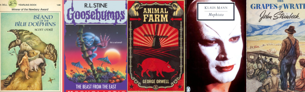 (5) Animal Farm, George Orwell. Read in fifth or sixth grade, and it improved enormously when I re-read it in high school after becoming familiar with the Soviets. This is one I should revisit.