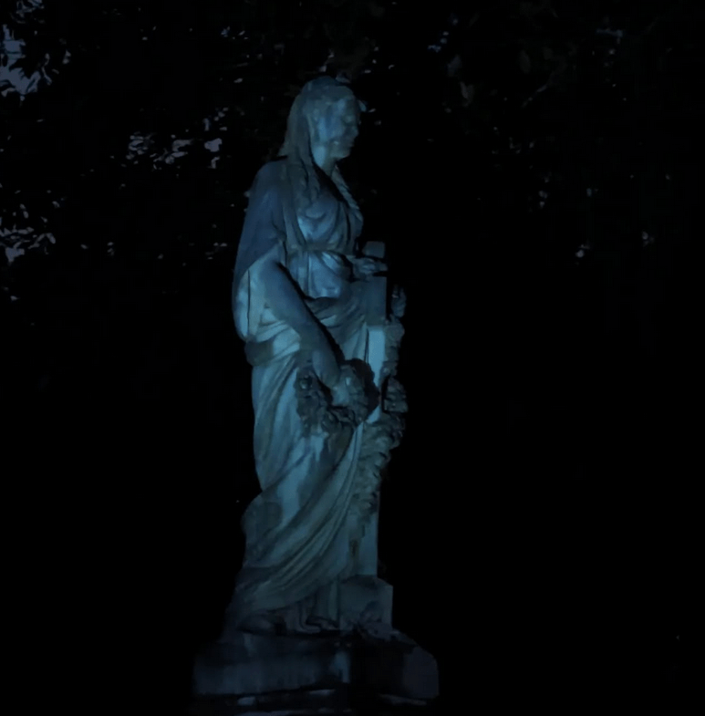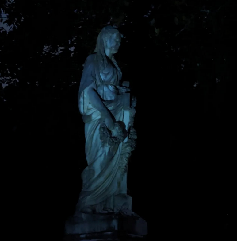 Elodie Todd Dawson,. in whose memory the mighty oaks that gave Old Live Oak cemetery its name stand. Elodie was married a prominent local, and interestingly was Abraham Lincoln’s sister-in-law. When she died in childbirth at age 37, her husband commissioned a statue for her: not liking her hair, he ordered another statue, costing him $14,000 in all. Most inflation calculators I played with wouldn’t touch it, but one suggested that that amount is nearly half a million. Even more impressive: the amount of gold that was worth $14,000 in 1877 is now worth over a mil and a half. Elodie was known for loving wax makeup that melted in the sun, so whenever she would encounter an unshaded area, she would double-time (in a lady-like fashion) to the next shade. This inspired her husband to plant the entirety of the West Selma Cemetary with shade trees.