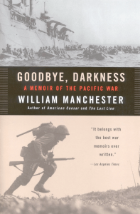 Haunted by disturbing dreams that evoke the bloody days of his youth, William Manchester decided to confront his memories directly. Retracing his steps in the Pacific War, returning again to the jungle-covered rocks wherin he suffered, and where so many of his brother Marines perished long before their time. Goodbye, Darkness is his memoir of that trek, combining history, personal memoir, and brooding travel ruminations. Or…..that’s what it’s written as, anyway: what eighth grade me didn’t know reading this for the first time back in ’98 or ’99 is that Manchester’s boots didn’t hit the ground until Okinawa, so much of this history is….borrowed or perhaps invented, making this a curious mix of history, memoir, and fiction. And I do mean curious: the chapter on Tarawa features Manchester talking about “our” experience in the botched landings, the intense resistance from the Japanese, etc, and even has himself in place arguing with an officer that a frontal assault on a particular objective is suicide until the flanking squads have finished their work; a section later, he notes that his ’78 visit was his first time visiting the island itself. The result is a fascinating if sometimes conflicting work.