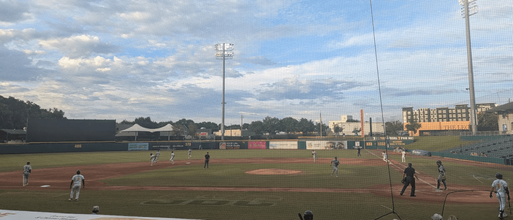 Speaking of, despite all the rain the day ended in a pretty baseball game at Riverfront Stadium in Montgomery, Alabama, where the local team (I hate their name) beat the Pensacola Blue Wahoos 8-1. I left at the opening of the ninth inning because The Local Team was winning 8-1 and was glad I did, because I spent over an hour driving through a lightning storm that would have been a lot less fun had I been trying to navigate a downtown filled rotten with one-way streets.