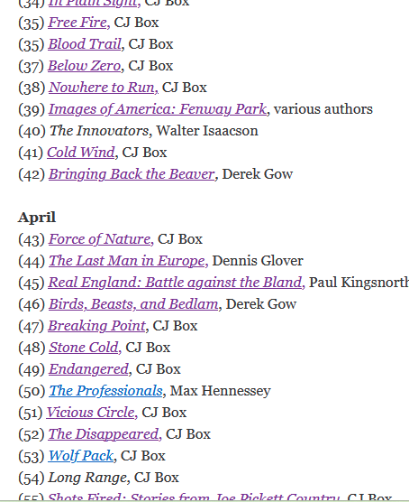 I never knew there was a Grease book. It also looks like you’ve read a lot by CJ Box this year. I haven’t heard of them but it’s always wonderful catching up on books by an author who works for you.