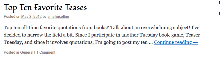 Today’s prompt from Long and Short Reviews is “Favorite Quotes from Books“, which is ridiculously unfair. I am a quote-hoard. But while I despair of winnowing out ten standouts from my collection, here’s the WWW.