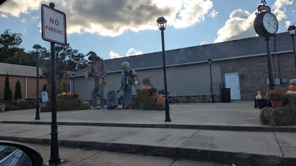 September was, without a doubt, a month of history. If you’ve followed me a long time, you know that history is my mainstay here, but the sheer-exclusive focus I had on it this month was still unusual. Also happily unusual was the lack of hurricanes: September is usually the peak season for them down here, with no close rival. (Unlike April and March, who squabble over who has the most tornadoes.) We even had two potentials brewing, and then one bumped into the other and away they both went! It was a warm and largely dry month here in the Heart of Dixie, aside from some occasional showers. Enormous yard skeletons are evidently in vogue this year, as I’ve spotted no less than five houses sporting them.