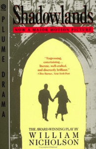 C.S. Lewis died on 11/22/63, a week before his 65th birthday. Over the years, I have taken up the habit of spending “a week with Jack” — reading something of his in that space, to spend time with an author whose letters and essays delight me like no other’s. While looking for a quote of Lewis’ to share on Christmas (specifically, his harrumping at the vulgar commercialization of it), I stumbled upon “Shadowlands: A Play” and was immediately intrigued. A few years ago I watched a movie about the relationship of Lewis and his American friend, and later wife, Joy Gresham — and it shared the same name. While “Shadowlands” is largely about the growth of Jack and Joy’s relationship, the scenes are more confined. Much of the play happens at the Kilns, where Jack and some male friends debate and argue and joke — and where Jack and Joy have more serious conversations. “Shadowlands” is not entirely about their relationship, though. It also draws heavily on The Problem of Pain, in that Lewis and his interlocuators frequently discuss suffering and theodicy. This is not abstract filler, either, as during the course of the play Joy learns that she’s been divorced and must now face the world alone. She doesn’t, of course, as anyone familiar with Jack and Joy’s story knows, but their union will bring its suffering as well as its bliss — as we see later in A Grief Observed. I loved this: the writer had a fairly good handle on Lewis’ voice, I think, even when Lewis isn’t being quoted, and the dialogue is often funny and insightful. As the play develops, it becomes quite serious — with Lewis arguing with himself, finding words written about suffering sound rather different when one is deep in the valley of the shadow of death. Definitely recommended to Lewis fans.