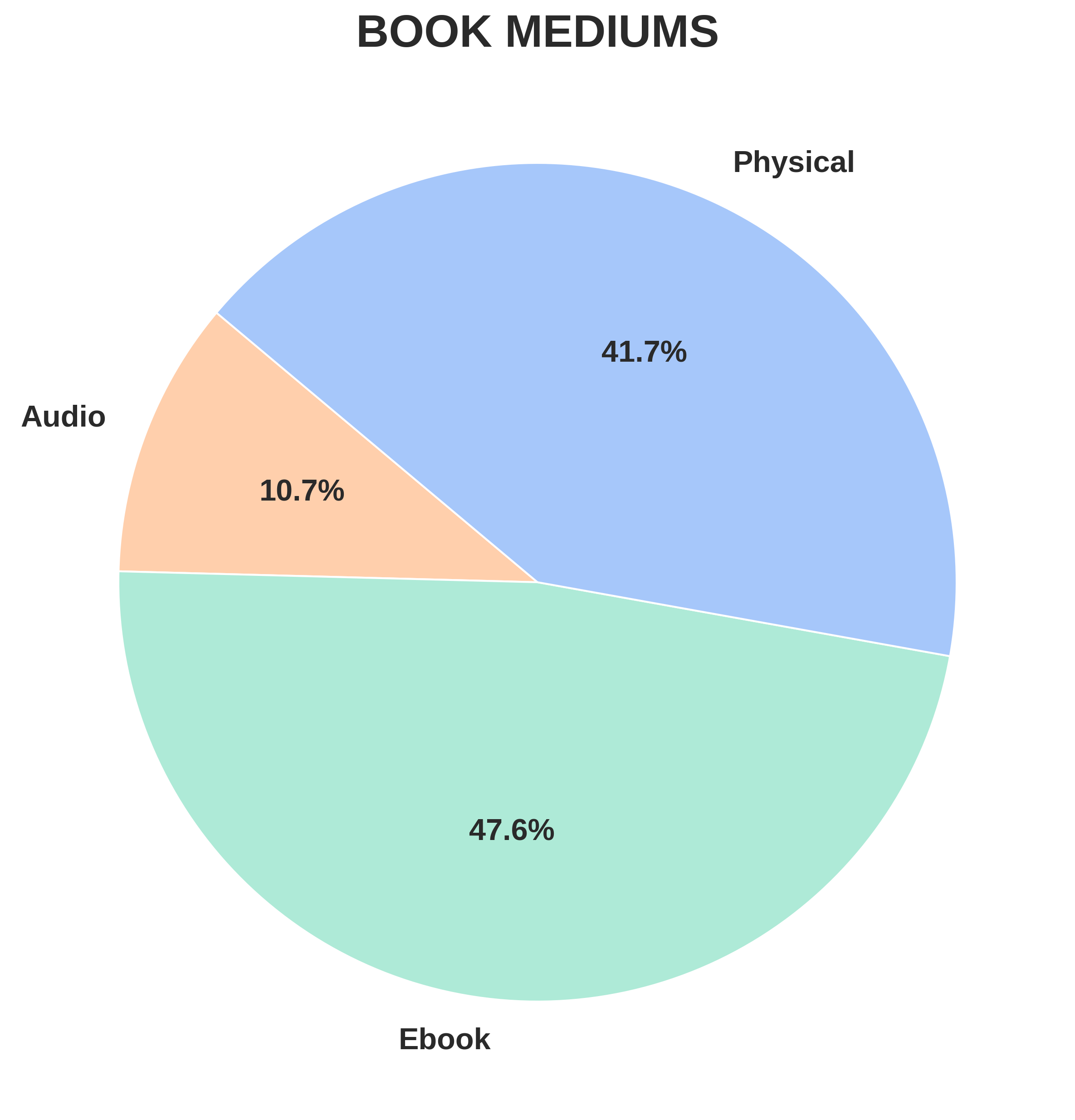 Ebooks overtook physical this year, but they’re fairly back and forth in recent history. Audiobooks are consistent with last year’s 11%.