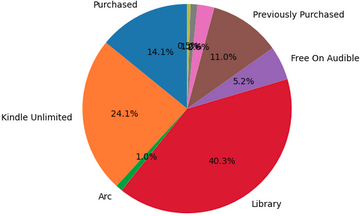 My standing goal is to keep the number of purchased books under 10%, so I failed miserably there. However, Kindle Unlimited is definitely paying for itself.